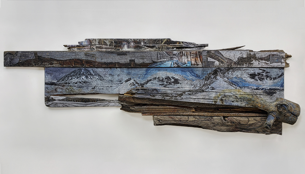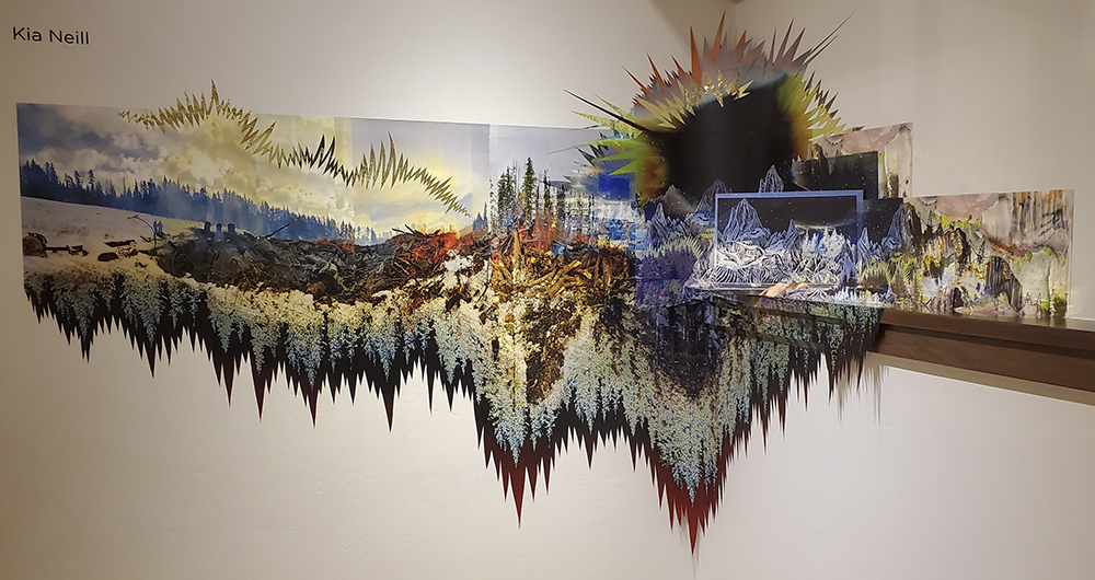 Kia Neill is native to Chicago IL, and has lived in various parts of the country before finding home in Alma, here in Park County. She received her MFA from The University of California San Diego and has taught art for 20 years, ranging from universities to non-profit art centers. She currently teaches in Breckenridge Creative Arts, for The Colorado Photographic Art Center, and Think 360 Arts. She is a multidisciplined artist working in photography, video, drawing, painting, ceramics, sculpture and installation. Her photo-based mixed media collages and paintings have been her present focus, and she has produced a number of these as commissions for Southwest Airlines Hobby International Airport, City of Houston Department of Public Waste, The Children’s Museum of Denver Mariposa Campus, the Aspen Police Department, the Town of Silverthorne, and Meow Wolf Denver Convergence Station. She additionally has served as a juror on several artist grant panels and recently curated the Breck Create Instructor Exhibition. This past winter she painted a mural for the Town of Silverthorne in the bus station lobby, and a mural for Yo Mama’s Cantina in Breckenridge.