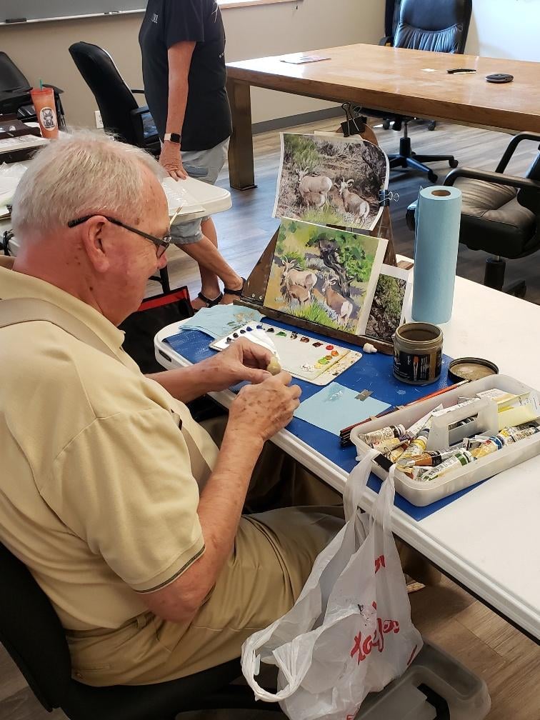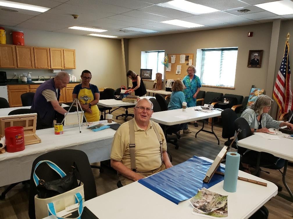 PCAG's mission is to foster the arts in our community. Guild members gather weekly to socialize, share, and learn while painting, drawing or creating through various media, to that end.