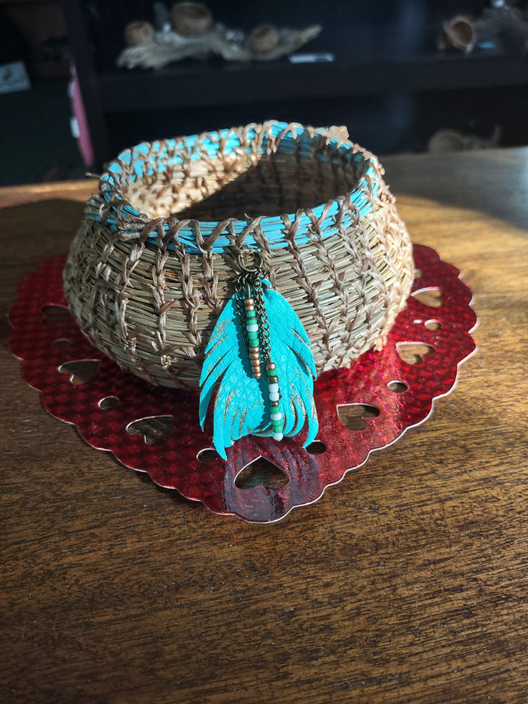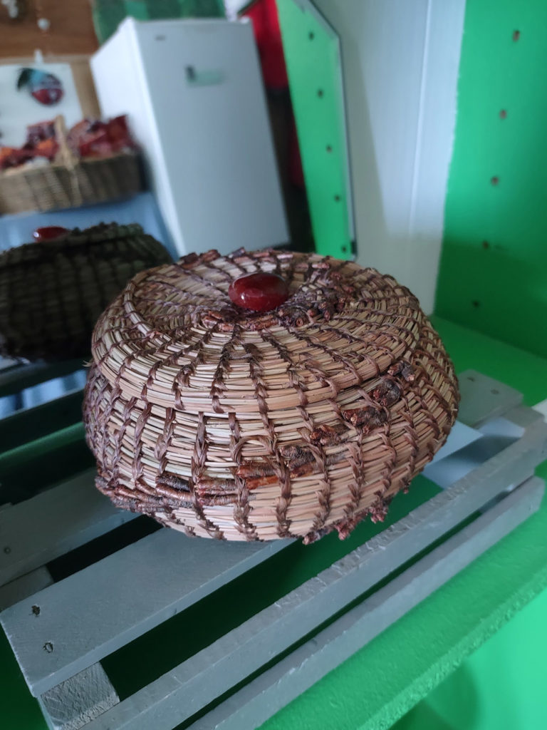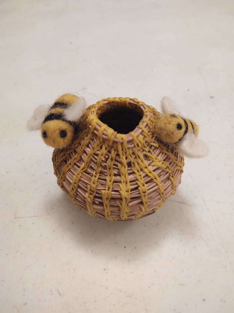 Renee enjoys many forms of art. She is known for her Pine Needle Baskets. These baskets are an art form passed down from indigenous peoples and Renee enjoys keeping them as natural as possible. She also incorporates gourds, paintings and needle felting into my baskets.